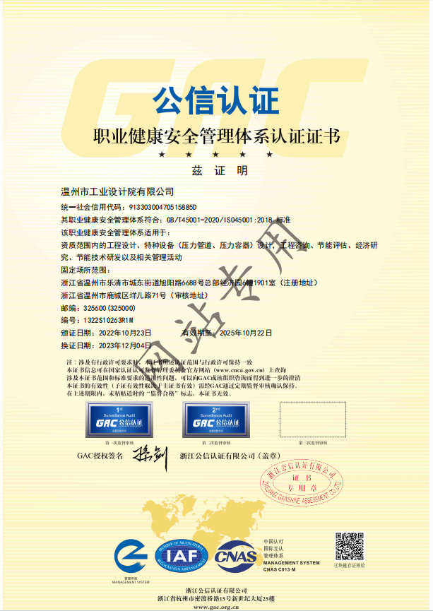 職業(yè)健康安全管理體系認(rèn)證證書
