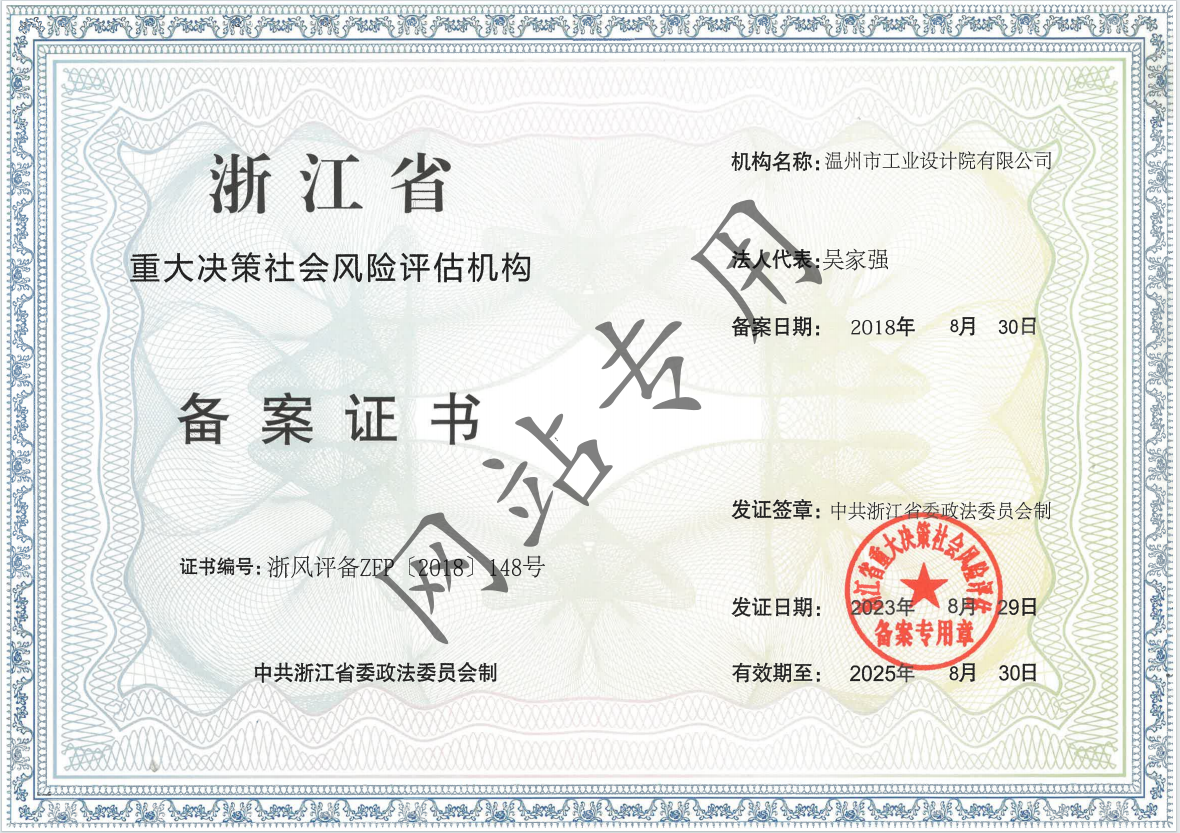 浙江省社會(huì)穩(wěn)定風(fēng)險(xiǎn)評(píng)估機(jī)構(gòu)備案證書