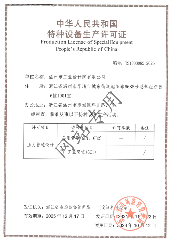 特種設(shè)備設(shè)計(jì)許可證壓力管道
