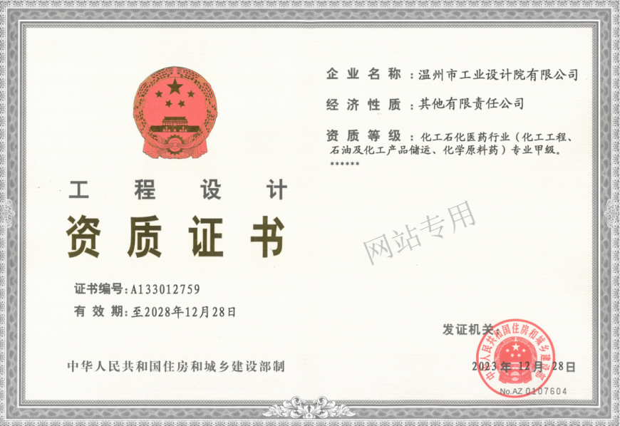工業(yè)院化工甲級(jí)資質(zhì)