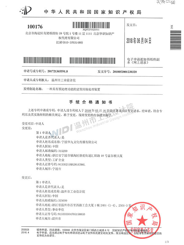 一種具有預處理功能的建筑垃圾處理裝置手續(xù)合格通知書 (1)