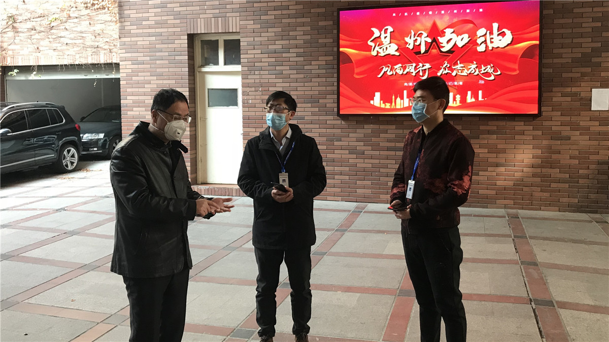 金國(guó)平一行在大樓門(mén)口主動(dòng)接受體溫監(jiān)測(cè),檢查大樓的”六個(gè)一”執(zhí)行情況,針對(duì)性地指出在疫情期間要借助信息化技術(shù)改進(jìn)出入口的登記手段,在提高效率的同時(shí)也有效地阻斷交叉感染。接著,檢查組一行深入大樓每個(gè)樓層詳細(xì)了解辦公場(chǎng)所清潔消殺狀況、消防安全落實(shí)情況等,并重點(diǎn)強(qiáng)調(diào)了辦公場(chǎng)所的“四個(gè)加強(qiáng)”,加強(qiáng)出入人員管控、通風(fēng)、保潔、消毒等工作。